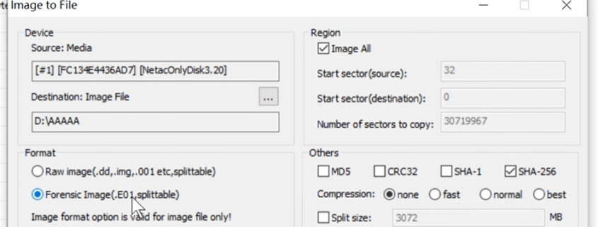 This digital forensic imaging software is to image the original CCTV DVR devices, digital cameras, video recorders to image file. The image file format can be dd, img, 001 raw image file format or can be also E01 forensic image file format.